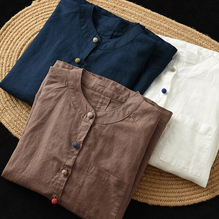 เสื้อเชิ้ตผ้าฝ้ายผสมลินินกระดุมสี