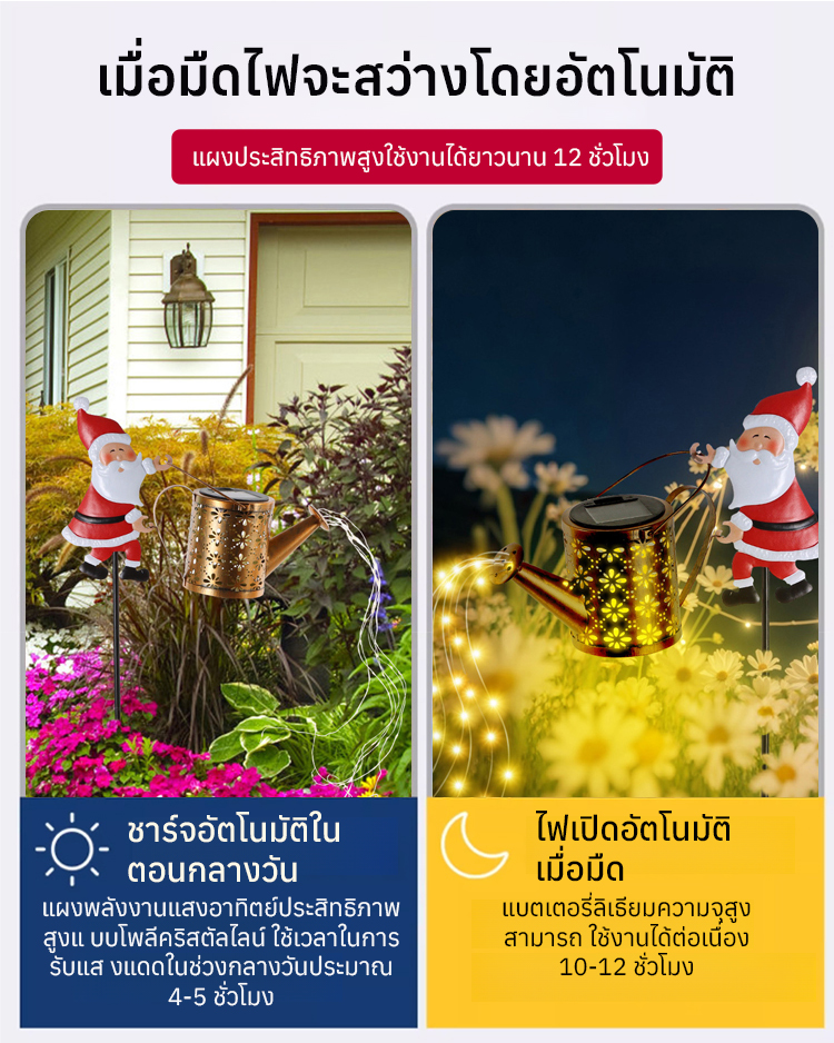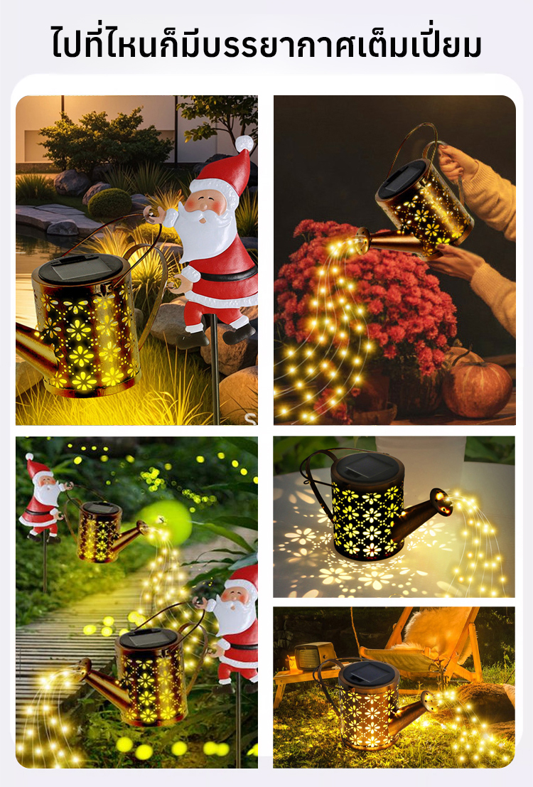 โคมไฟใช้พลังงานแสงอาทิตย์ที่เป็นมิตรต่อสิ่งแวดล้อม🌞 ชาร์จไฟอัตโนมัติในช่วงกลางวัน และส่องสว่างอย่างชาญฉลาดในเวลากลางคืน ดีไซน์โลหะโปร่งสบายอันเป็นเอกลักษณ์ กันน้ำและทนทาน💧 พร้อมไฟ LED โทนอบอุ่นช่วยสร้างบรรยากาศคริสต์มาสแสนอบอุ่น ไม่ว่าจะตกแต่งสวนหรือเพิ่มความโรแมนติกให้กับงานปาร์ตี้ โคมไฟนี้คือเครื่องประดับชิ้นสำคัญที่ขาดไม่ได้สำหรับเทศกาลวันหยุด! 🎄🔥🛒