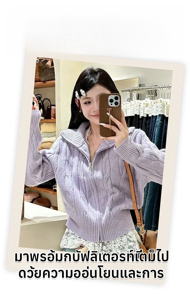 ลายถักไหมพรมอ่อนโยน + ดีไซน์ซิปหน้าแบบคิดมาอย่างดี เนื้อผ้านุ่มและเป็นมิตรต่อผิว คุณจะรู้สึกอบอุ่นทันทีที่สวมใส่ 🧣